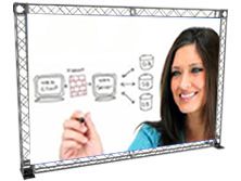 Estrutura em boxtruss para backdrop e back wall, leve, compacta, resistente e discreta Montagem e desmontagem rápida, não necessita de chaves é utilizado manípulo para aperto Podem ser pintadas nas cores preto fosco ou brilhante, branca, amarela, vermelha, prata ou outras cores sob consulta. |