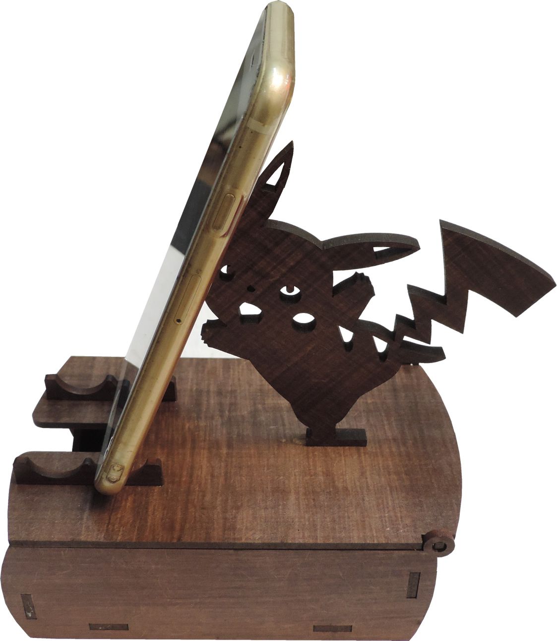 Suporte Celular Mesa Madeira com porta treco Pikachu
