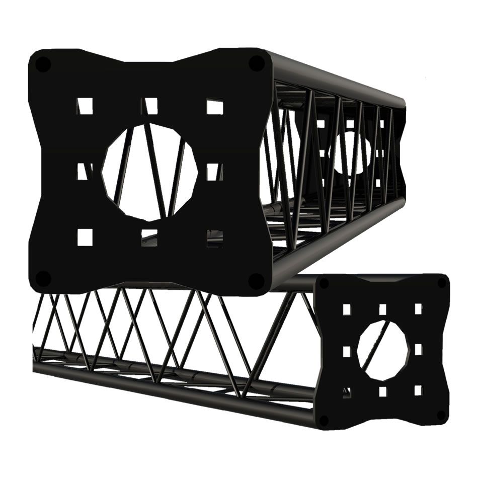 Módulos Boxtruss da Linha Q15, fabricada nas medidas padrão de 0,5 - 0,7 - 1,0 - 1,5 - 2,0 - 2,5 - 3,0 metros de comprimento ou com medidas de tamanhos especiais por encomenda limitando ao comprimento de 3 metros.
